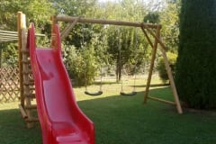 Inoltre possono essere dotate oltre ai seggiolini e tavolette di scivoli, scalette, trapezi, anelli ginnici ecc. L’altalena in legno viene fornita smontata, il montaggio è estremamente facile.